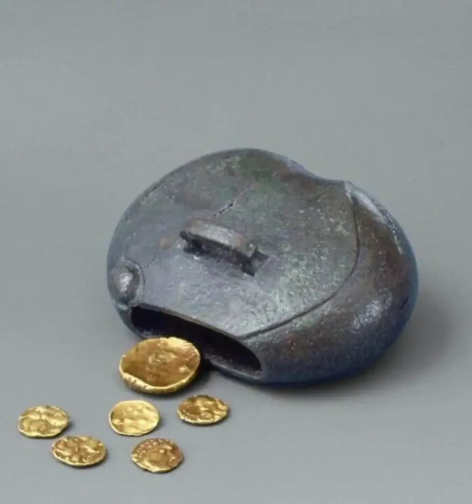 A bronze purse measuring just 4.3 by 3.3 centimeters was discovered in the Celtic settlement of Manching, Germany. Inside were six gold coins. It dates to around 200 BC, and it is incredible to think of such a personal item surviving for so long.
