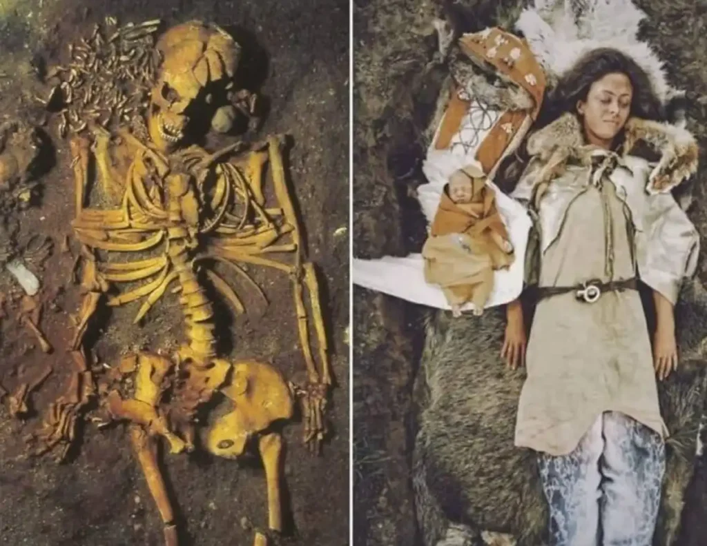 Archaeologists discovered the grave of a 20-year-old woman and her infant child in Vedbæk, Denmark. Their burial dates back roughly 6,000 to 7,000 years. A modern reconstruction helps bring their story heartbreakingly close to us.