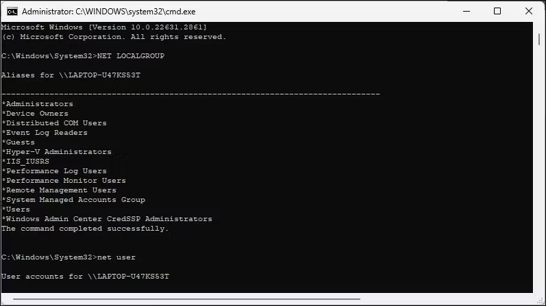 You can use the command-line utility “net localgroup” or “net user” to manage users and groups on Windows 11/10. It’s a convenient way to view, add, and remove local groups and users without using third-party utilities.