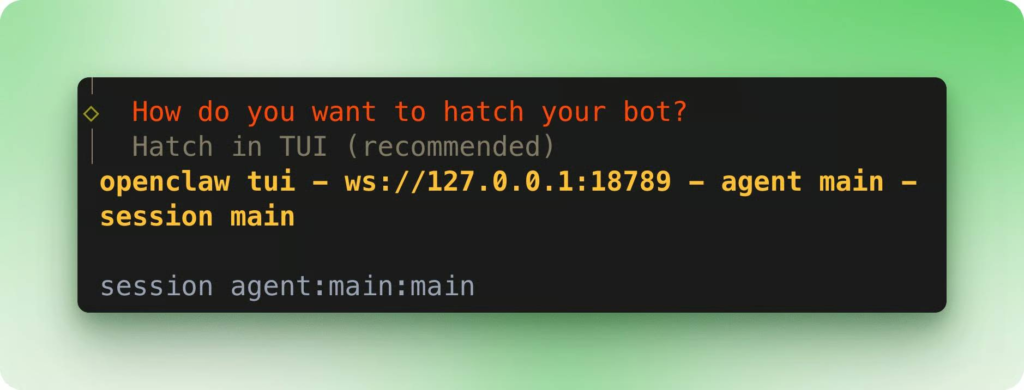 Once onboarding is complete, the gateway service is installed and your assistant can be launched through the terminal interface and web dashboard. When everything is connected properly, messages should show up in all the active surfaces at once—your messaging app, the terminal UI, and the web view.