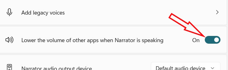 Below is a tool to Lower the volume of other apps when Narrator is speaking if you find background noise or music from other apps making the audio from Narrator difficult to hear.